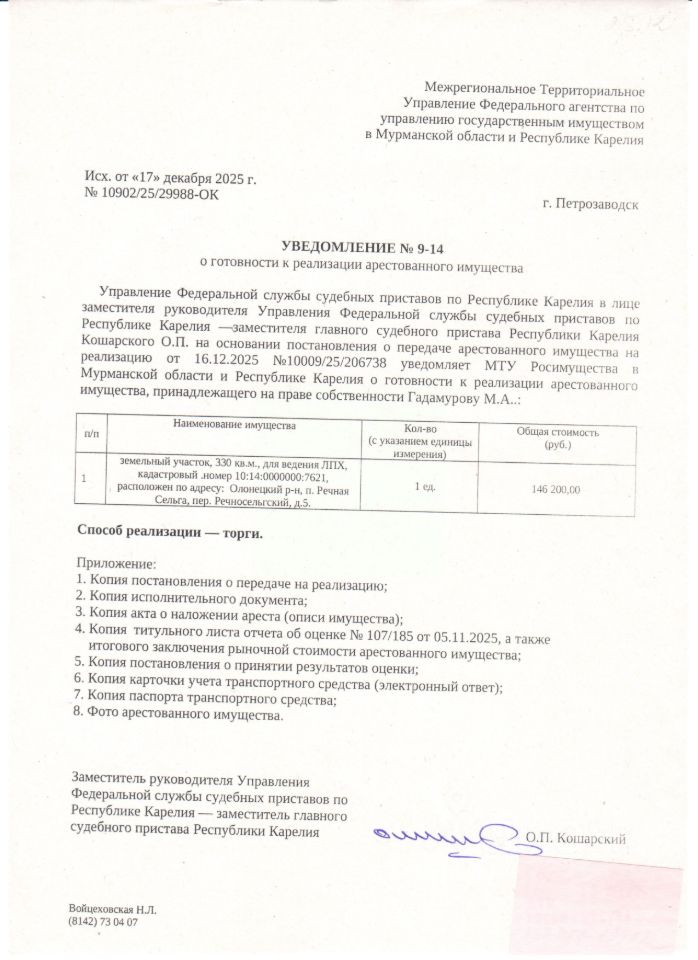 АукционОбъект реализуется посредством электронных торгов. Конечную информацию об оплате, дополнительных платежах и условия заключения договора смотрите в документах извещения к лоту, на сайте электронной торговой площадки.