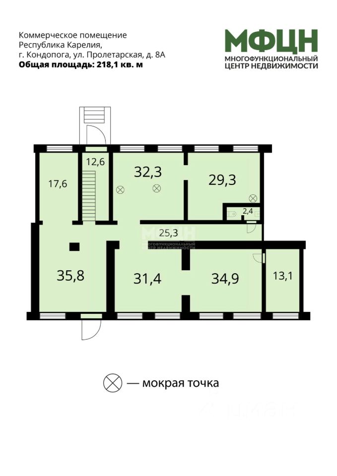 Общая площадь помещения: 218,1 кв. м.