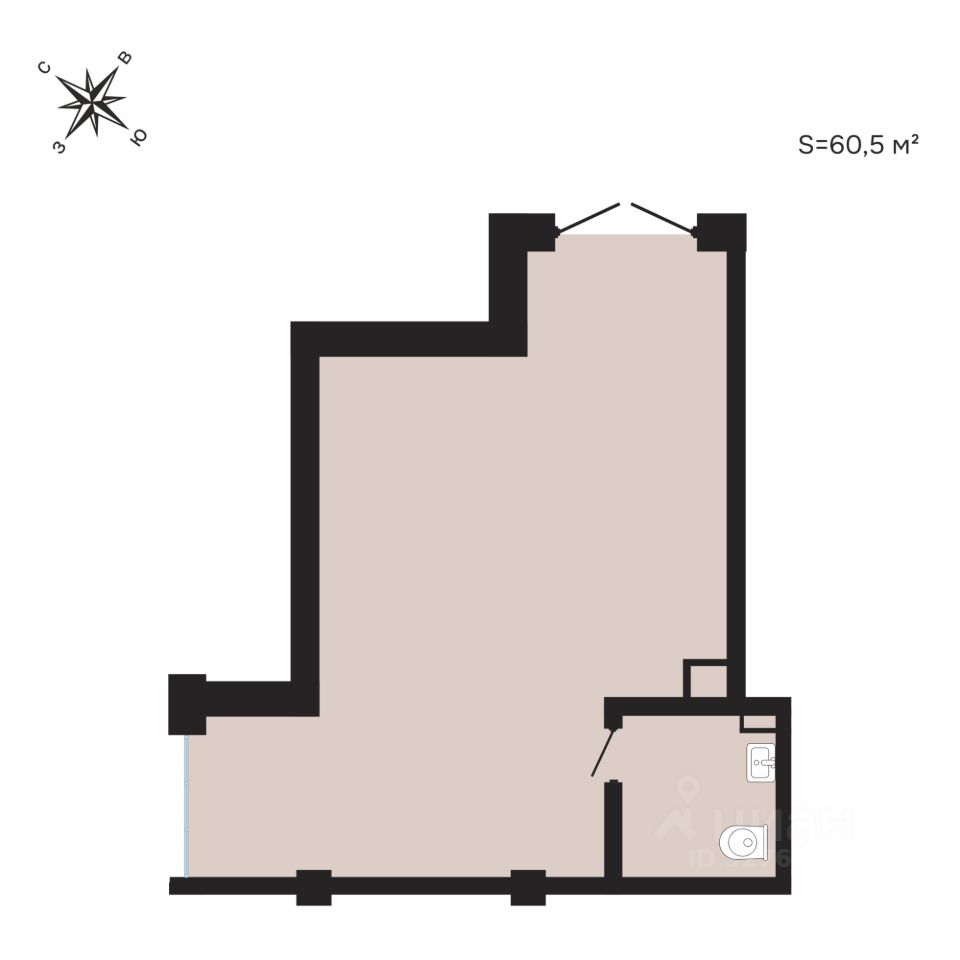 Коммерческое помещение 4 площадью 60,5 м² имеет отдельный вход и большое панорамное окно с видом на улицу — отличное решение для бизнеса, где важна "витрина" и визуальный контакт с прохожими.