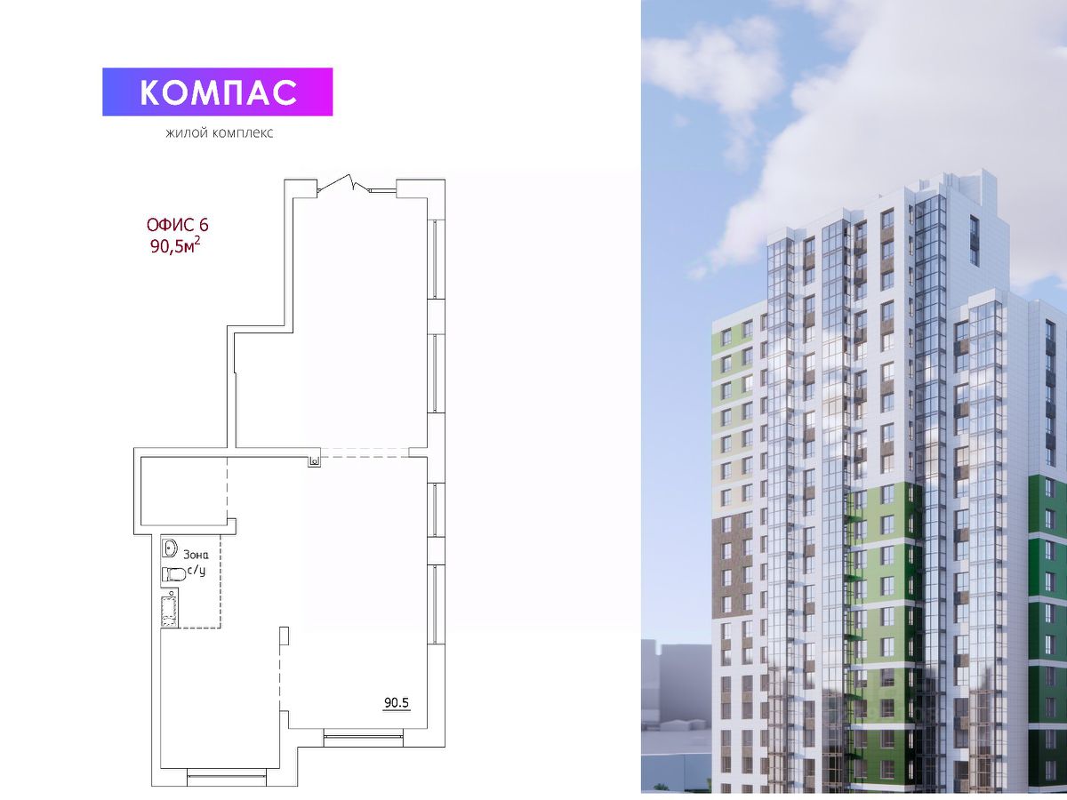 В продаже офис 90,5 кв.м. в третьем доме монолитном жилого комплекса Компас.