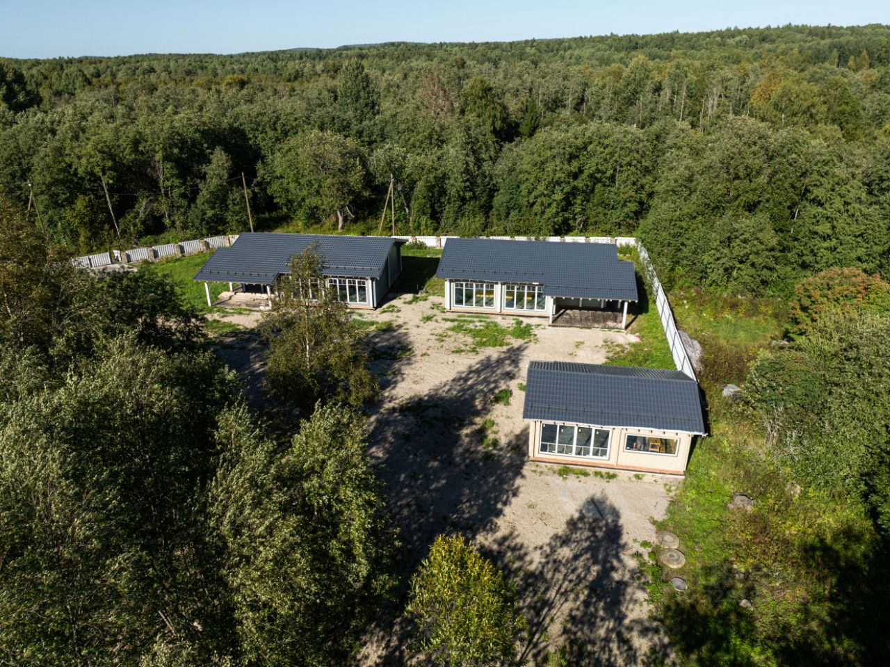 На участке расположены два одноэтажных дома из клееного бруса, построены по индивидуальному проекту (финский дом Lahti):