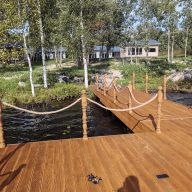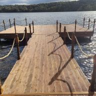 Пирс площадью 45 метров (9х5) и дорожка от берега 8 м длины; выполнен на железных сваях, отделка — лиственница, обработан маслом. Глубина акватории у пирса - 2,5-3 м.; прибрежная зона очищена от растительности и отсыпана песком.