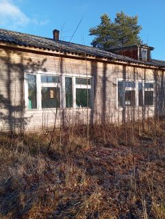 Одноэтажное нежилое здание. Фундамент: бутовый ленточный состояние неудовлетворительное. Стены: брусчатые состояние удовлетворительное. Перегородки: деревянные состояние неудовлетворительное. Крыша: асбестоцементная состояние неудовлетворительное. Полы: дощатые состояние неудовлетворительное. Окна: 2-е створные состояние неудовлетворительное. Внутренняя отделка состояние неудовлетворительное. Инженерные коммуникации отключены: Отопление центральное водяное. Водопровод от местных источников. Канализация септик. Электроснабжение центральное. Общее состояние здания характеризуется как неудовлетворительное.