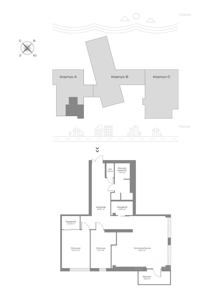 Видовые характеристики квартиры: Онежское озеро, сквер Аквамарин.