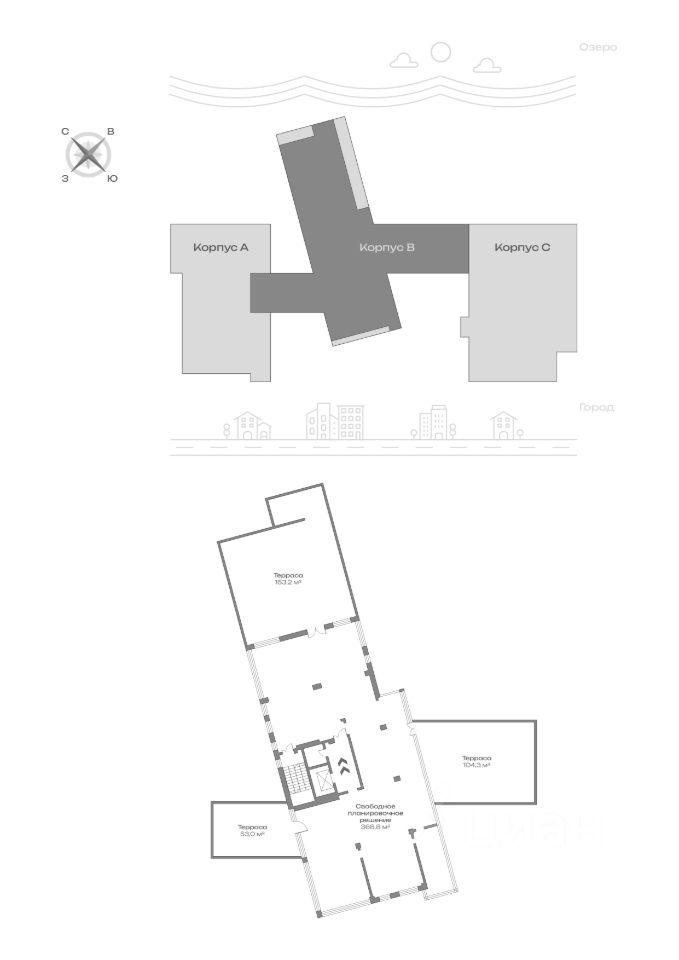 Общая площадь 368 кв.м, Свободное планировочное пространство 368 кв.м, Дополнительно террасы - 300 кв.м. Высота потолков 3,1 м. Видовые характеристики квартиры: Онежское озеро, сквер Аквамарин, наб. Варкауса.