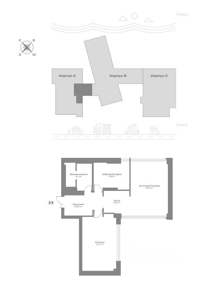 Видовые характеристики квартиры: Онежское озеро, сквер Аквамарин.