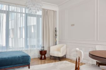 Новая квартира с дизайнерским ремонтом от известного дизайнерского бюро "Центр Дизайна и Интерьера" (CID), полностью меблирована, с техникой. Интерьер, выполнен в современном стиле. В нем использованы как ультрасовременные, так и традиционные в дизайне формы. Высокие потолки и большие окна формируют пространства, наполненные светом.