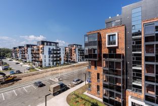 - современная красивая архитектура: комбинированные фасады (кирпич, керамогранит, штукатурка), разноцветные акценты в виде дизайнерских французских балконов;