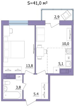 Продаётся 2-комнатная квартира в строящемся доме (Дом 3), срок сдачи: II-кв. 2026, общей площадью 41 кв.м., на 19 этаже.
