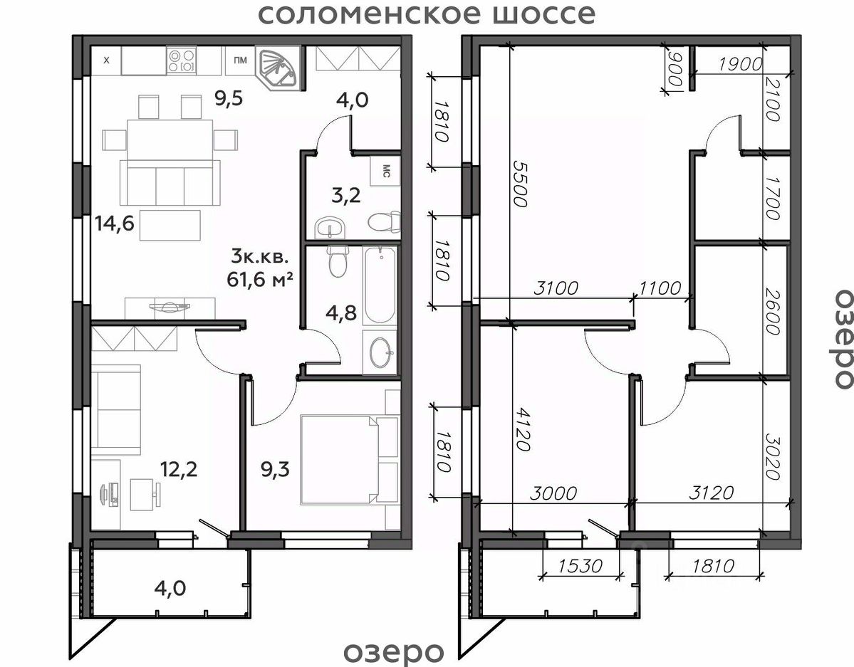 Продаётся 3-комнатная квартира в строящемся доме (Дом 9), срок сдачи: IV-кв. 2027, общей площадью 61.6 кв.м., на 21 этаже.