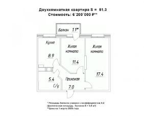 Продаётся 2-комнатная квартира в строящемся доме (Дом 1), срок сдачи: IV-кв. 2025, общей площадью 51.3 кв.м., на 5 этаже. Новый жилой комплекс от Специализированного застройщика "СП Спасение" расположен по адресу: г. Петрозаводск, по ул. Зайцева.