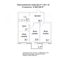 Продаётся 3-комнатная квартира в строящемся доме (Дом 1), срок сдачи: IV-кв. 2025, общей площадью 58.7 кв.м., на 4 этаже. Новый жилой комплекс от Специализированного застройщика "СП Спасение" расположен по адресу: г. Петрозаводск, по ул. Зайцева.