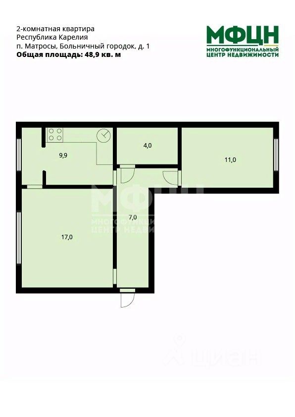 К покупке предлагается 2 - комнатная квартира, расположенная на 1-м этаже 5 - этажного дома, находящаяся по адресу: Республика Карелия, Пряжинский район, п. Матросы, городок Больничный 1.