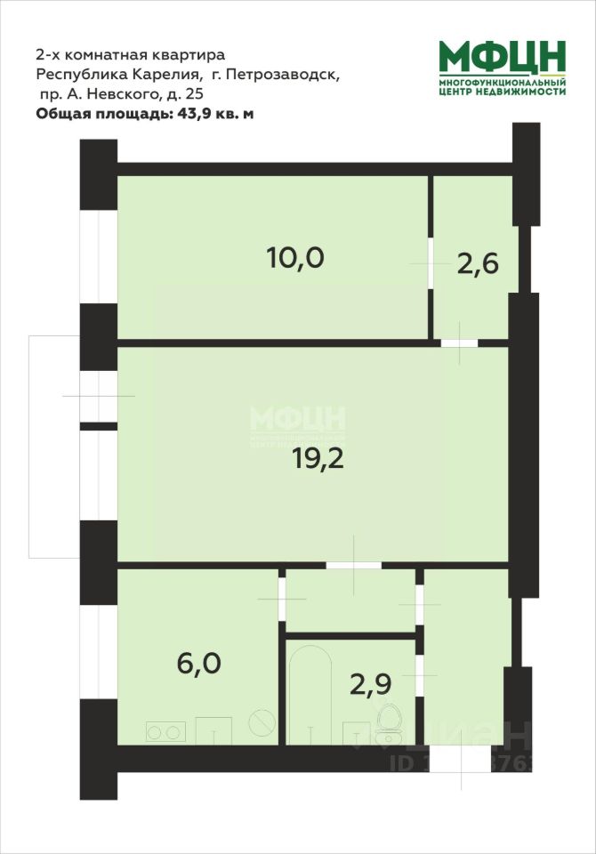 К покупке предлагается 2 - комнатная квартира, расположенная на 4-м этаже 4 - этажного дома, находящаяся по адресу: город Петрозаводск, пр-кт Александра Невского, дом 25.