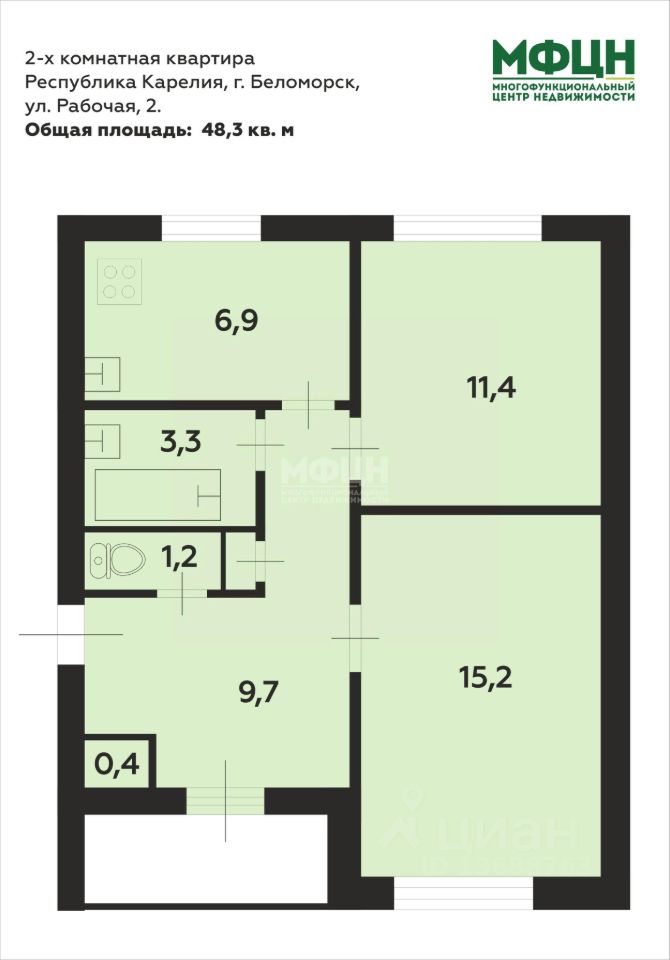 К покупке предлагается 2 - комнатная квартира, расположенная на 2-м этаже 2 - этажного дома, находящаяся по адресу: город Беломорск, ул. Рабочая, дом 2.