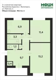 - общая площадь: 48,3 кв. м, жилая: 26,6 кв. м;