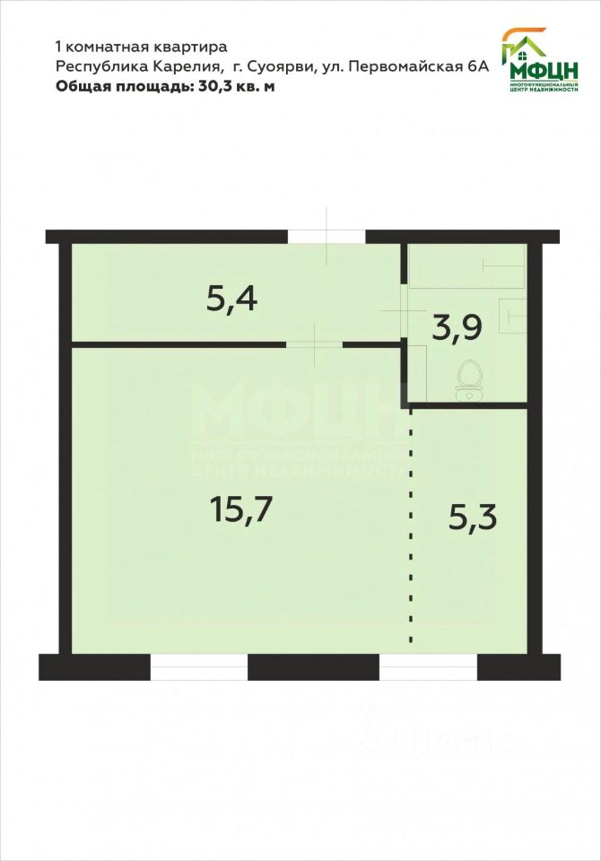 - общая площадь: 30,3 кв. м, жилая: 15,7 кв. м;