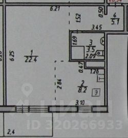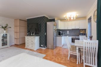 - Просторная светлая комната (22,4 кв.м.) объединена с кухней (8,2 кв.м.)