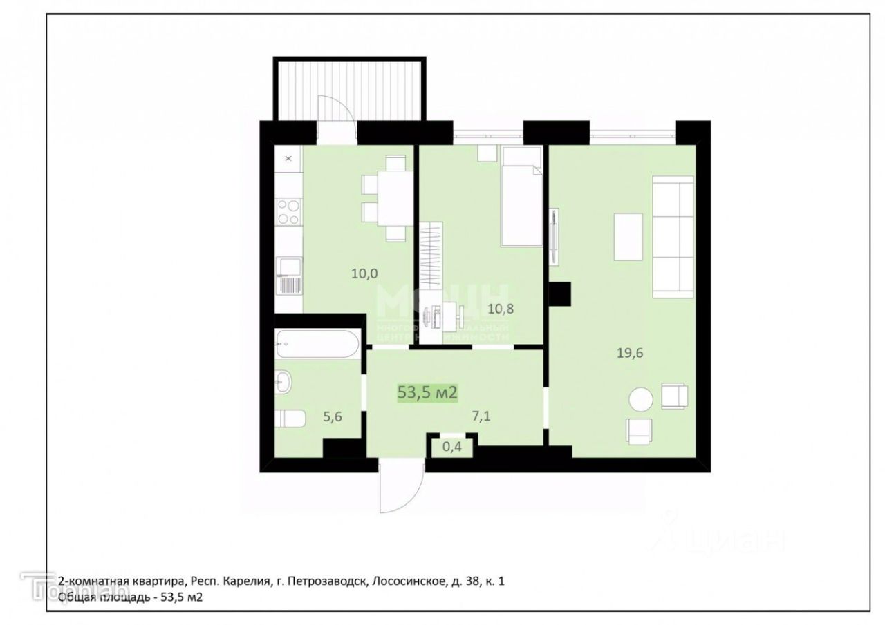 К покупке предлагается 2 - комнатная квартира, расположенная на 14-м этаже, 20 - этажного дома, находящаяся по адресу: г. Петрозаводск, шоссе Лососинское, дом 38, корпус 1.