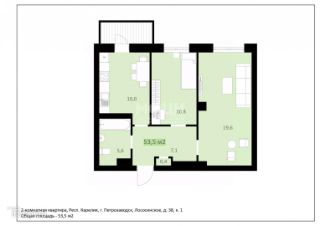 - общая площадь: 53,5 кв. м, жилая: 30,4 кв. м;