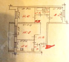 Жилая площадь 35.5 кв.м, кухня - 8.6 кв.м, все комнаты раздельные, площадью: 15.7, 11.6 и 8.2 кв.м.