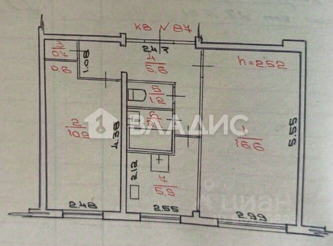 Общая площадь составляет 43,6 кв.м, из которых 27,5 кв.м — жилая площадь, 5,9 кв.м — кухня. Комнаты изолированы, их площадь — 16,6 кв.м и 10,9 кв.м.