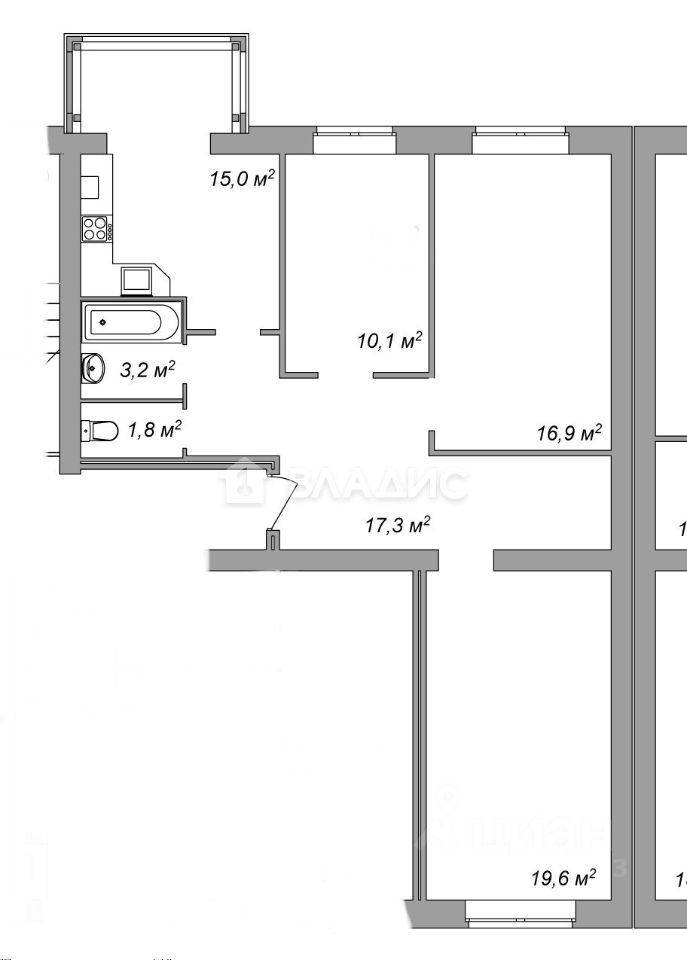 - гибкая и функциональная планировка с комнатами на обе стороны;