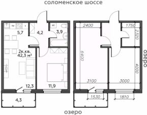 Продаётся 2-комнатная квартира в строящемся доме (Дом 9), срок сдачи: IV-кв. 2027, общей площадью 42.3 кв.м., на 21 этаже.