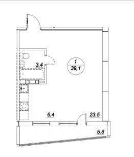 Планировка включает: 1 спальню совмещенную с просторной кухней, санузел, большую лоджию.
