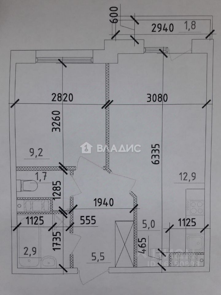 -Общая площадь квартиры составляет 39,3 кв. м;