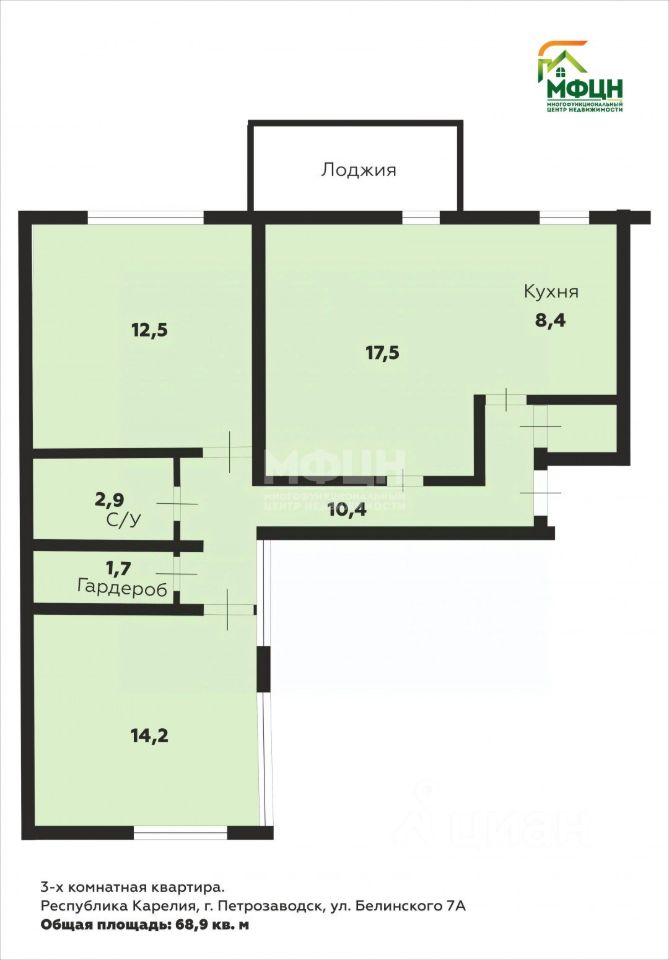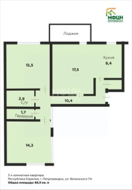 К покупке предлагается 3 - комнатная квартира, расположенная на 3-м этаже 5 - этажного дома, находящаяся по адресу: г. Петрозаводск, ул. Белинского, д. 7А.