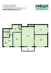 - комнаты: 16,3; 9,8; 8,1 и 7,7 кв. м;