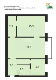 - общая площадь: 43,8 кв. м, жилая: 29,3 кв. м;