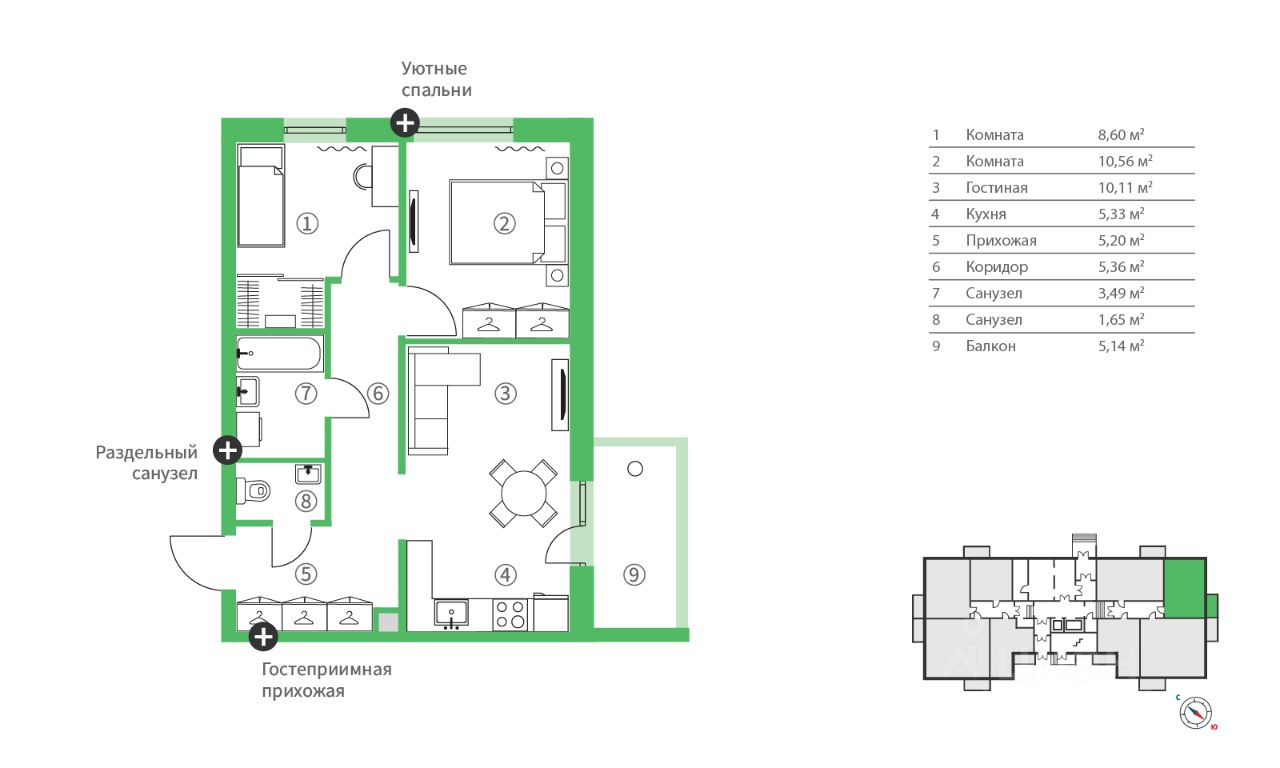 Продаётся 3-комнатная квартира в строящемся доме (5.1), срок сдачи: IV-кв. 2026, общей площадью 55.44 кв.м., на 1 этаже. Новый жилой комплекс "Сампо" от застройщика "Стройинвест КСМ" органично сочетает городской комфорт и очарование жизни загородом. Здесь каждый сможет найти то, что ему необходимо: