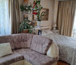 Квартира, расположена в центре, в 2х этажном, панельном доме, двое соседей на лестничной площадке, спокойный, чистый подъезд, домофон. Природный, дешёвый газ, центральное водоснабжение и водоотведение. Свой маленький приусадебный, разработанный участок. В подвале, закрепленная за квартирой кладовая, примерно 6 м.кв., находится под квартирой. Квартира теплая, светлая,удобная планировка. Лоджия из комнаты, большая, два шкафа остаются владельцу, на лоджии электричество, солнечная сторона, уже с марта, всегда открыта, т.к. очень греет солнце. В кухне новая газовая поверхность, новый эл. духовой шкаф, остаётся кухонный гарнитур. Счётчики на газ, воду. Полы: в большой комнате ламинат, прихожая, кухня- ленолиум, ванная - плитка. В квартире имеется место под гардеробную или кладовую, остаётся шкаф в прихожей. Большой, вместительный шкаф в комнате, остаётся диван, остальная мебель по договорённости. Во дворе оборудованая детская площадка, рядом с домом магазин Магнит, местная администрация, Олония, торговая площадь. В шаговой доступности остановка общественного транспорта, поликлиника, почта. Рядом озеро Логмозеро, красивые места для прогулок, а главное абсолютный покой и тишина. Доброжелательные соседи не только в подъезде, но и в округе. Всегда в наличие парковочные места. До города, 10 мин. на автомобиле, отличная дорога, без пробок. Состояние - заезжай и живи.