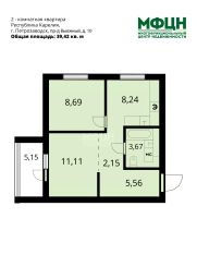 - общая площадь: 39.4 кв. м, жилая 20 кв. м;