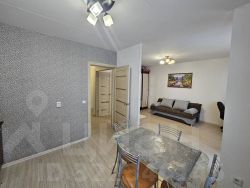 - В квартире сделан в спокойных светлых тонах. На полу уложен ламинат, встроенный кухонный гарнитур.