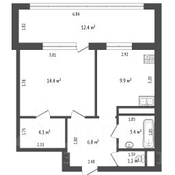 Планировка отличается практичностью: просторная светлая комната, изолированная кухня больших размеров и совмещенная гардеробная зона с кладовой для эффективной организации хранения.