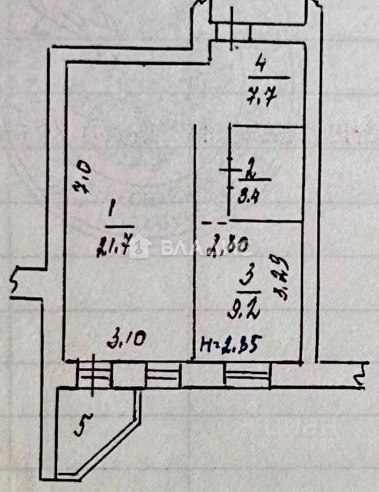 гостиная 21.7 м², кухня 9.2 м², санузел 3,4 м², прихожая 7.7 м², лоджия 1.6 м²