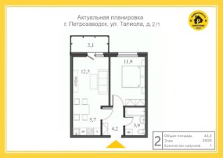 — Общая площадь: 43,3кв.м. (площадь без балкона - 37,9 кв.м.)