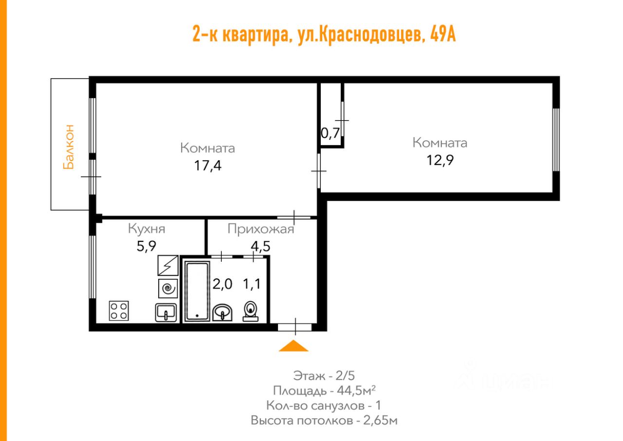 Санузел раздельный, что удобно для семьи. Есть балкон, где можно организовать зону отдыха или хранение сезонных вещей.