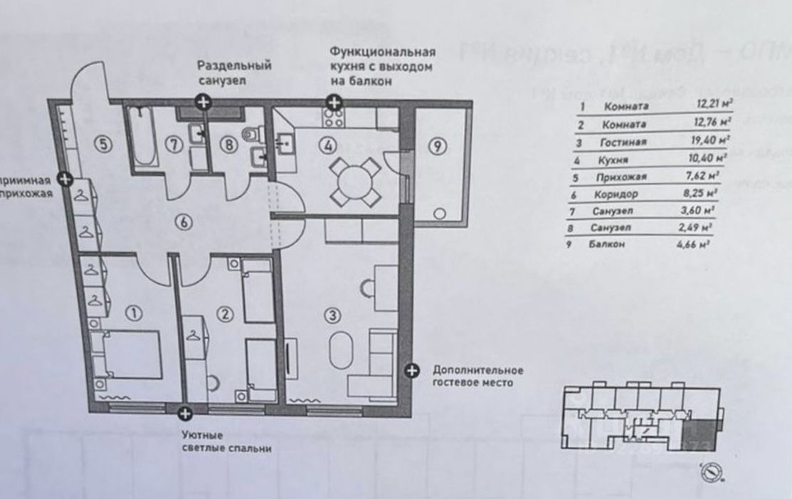 Плoщадь квaртиpы сocтавляет 81,40 кв.м.