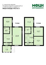 - комнаты: 22,8; 12,8; 11,3 и 10,7 кв. м;