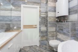 - На полу уложен ламинат, в сан.узлах кафельная плитка.