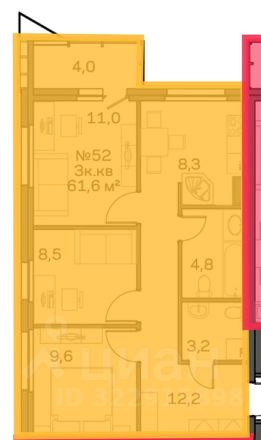 В продаже полноценная трехкомнатная квартира 61.6 кв.м