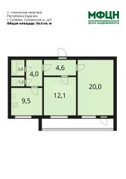 - общая площадь: 54 кв. м, жилая: 30,2 кв. м;