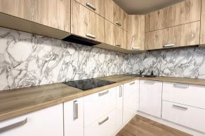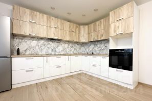 В квартире имеется посудомоечная машина, керамическая плита, духовой шкаф на удобном уровне, не нужно наклоняться, все выполнено идеально и удобно для пользования.
