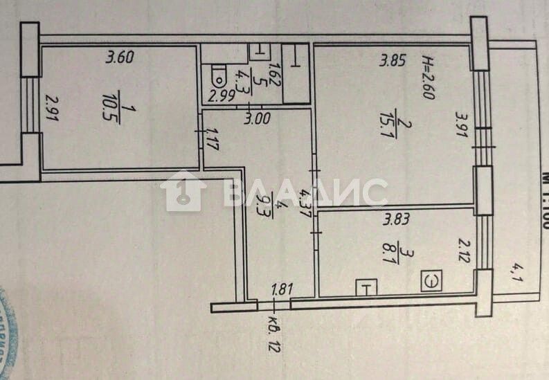 Квартира расположена на четвёртом этаже пятиэтажного панельного дома 1990 года постройки. Общая площадь составляет 47,3 кв. м, из которых 25,6 кв. м — жилая площадь. Две изолированные комнаты с площадями 10,5 кв. м и 15,1 кв. м, кухня — 8,1 кв. м. Высота потолков — 2,6 м.