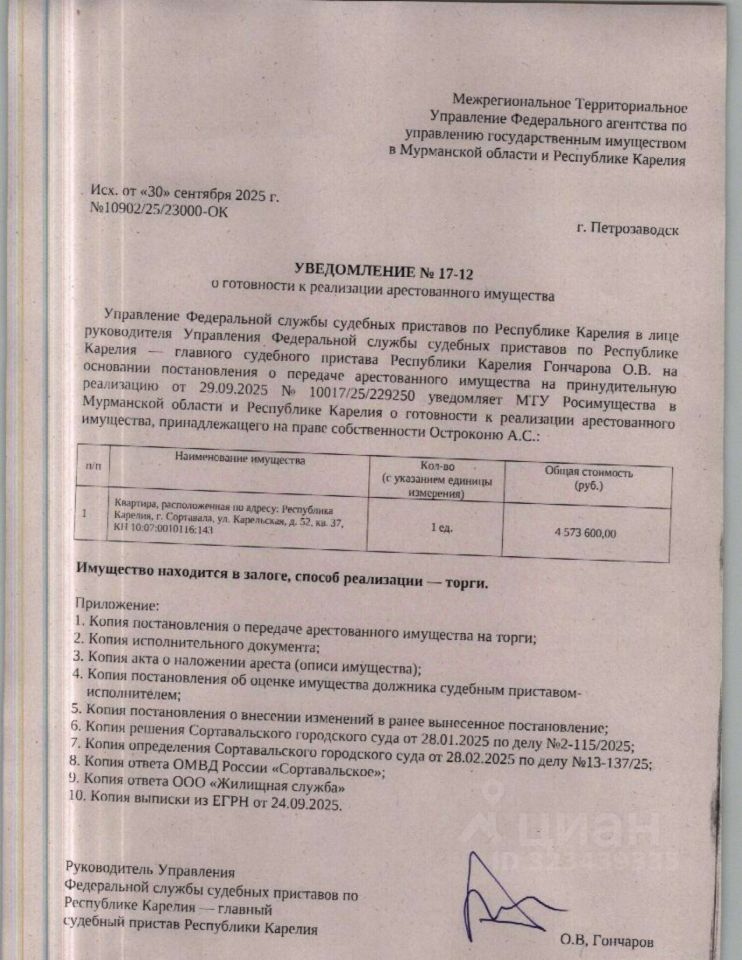 Квартира площадью 59 кв. м., КН 10:07:0010116:143, расположенное по адресу: РК, г. Сортавала, ул. Карельская, д. 52, кв. 37, этаж 5. Вид права — собственность. По данному адресу зарегистрировано 4 человека. Задолженность за капитальный ремонт на 01.09.2025 составляет 4885,20 руб.