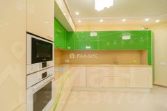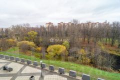 Квартира расположена на третьем этаже с пассажирским и грузовым лифтами. Окна выходят на реку, открывая живописный вид. В доме есть подземная парковка, что очень удобно для автовладельцев.